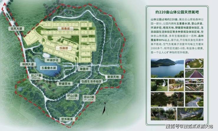 在云山半山之上,依山临湖而建,被白云山脉三面环抱,背山面湖,藏风纳气,总设计用地约300亩,由多栋5-6层小高层、近220亩山体公园组成。