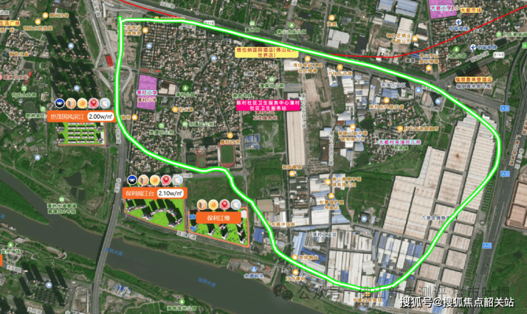 保利江缦雄踞佛山顺德陈村三龙湾东翼核心板块,华阳路东侧、东平河畔,地处禅城、桂城、顺德陈村三城交汇之处,与佛山新城一江之隔,是广佛同城化的 “桥头堡”。三龙湾作为政府重点打造的广佛融合核心区,累计投入超千亿元,金融、商贸、科技产业高度聚集,人才虹吸效应显著,日均流动人口巨大,商业活力与消费能级领跑全城。