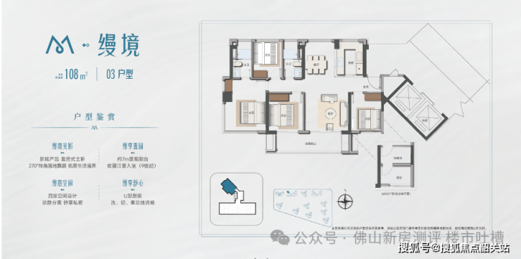 保利江缦的设计理念,源于对 “隐奢人居” 的深度探索,融合全球顶尖安缦酒店式简约美学与岭南文化底蕴,打造 “建筑融于自然,自然衬托建筑” 的低密滨江社区。项目整体采用 **“M” 型环抱式亲江布局 **,经过数十遍反复打磨,以环抱之态打开滨水界面,通过不同角度的楼栋偏转,实现户户南向望江,同时最大化提升采光和通风效果。