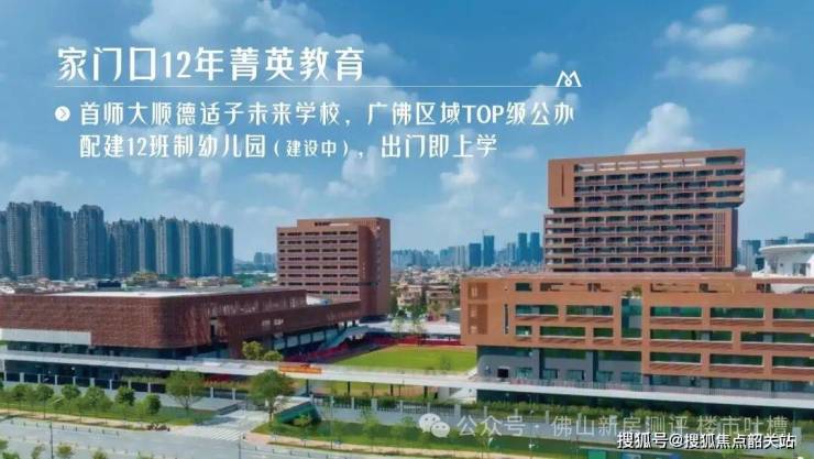 项目西侧约 250 米,便是首都师范大学顺德适子未来学校,这是一所斥资 8.5 亿打造的九年一贯制公办名校,由首都师范大学直接派驻师资,教学质量与北京校本部同步,提供 3900 个优质学位,覆盖小学至初中全阶段。