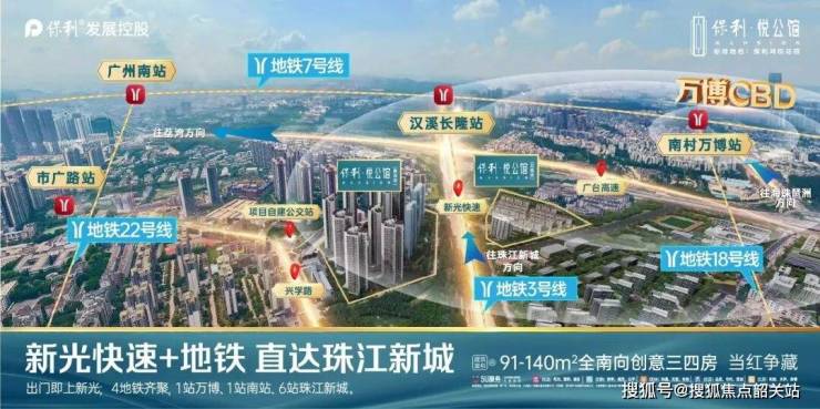 除了依托万博CBD的发展红利,保利悦公馆的交通优势也十分突出,打造“半小时通达主城区、1小时畅达粤港澳”的高效交通格局,彻底解决购房者的通勤困扰。项目坐拥“5横5纵”立体交通路网,5条横向高速分别为新光快速、华南快速、番禺大道、市广路、东新高速,5条纵向干道分别为汉溪大道、南大干线(建设中)、广明高速、东环路、兴业大道,出门即达新光快速,自驾出行可快速通达广州各个核心区域,无论是去天河、海珠,还是去南沙、佛山,都能畅通无阻。