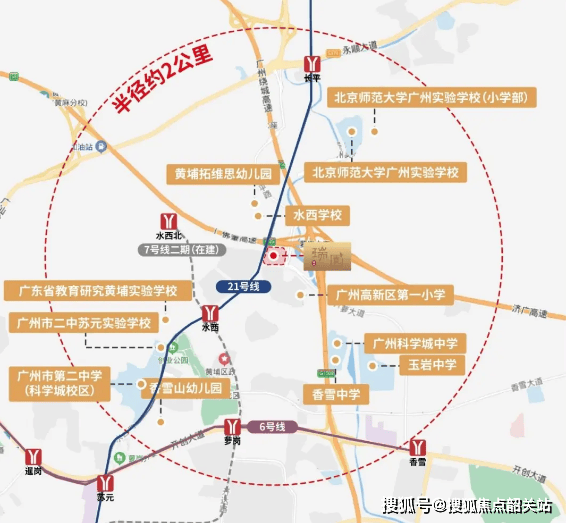 A: 佳大瑞园坐落于广州市黄埔区科学城区府板块,位于科学城的心脏地带,这里不仅是广州重点规划的“一区三城”主阵地之一,也是广州总部经济的重要聚焦区。项目地处科学城的黄金地段,周边汇集了宝能、创维、日立、LG、多益等超过130家世界500强企业,形成了一个高科技企业和高端人才密集的区域。佳大瑞园紧邻网红大盘科城山庄,距离地铁21号线和7号线(在建中)以及有轨电车1号线的中转站地铁水西站仅约1公里,交通十分便捷。同时,项目周边商业配套齐全,包括萝岗敏捷广场、万达广场、锐丰中心等大型购物中心,为居民提供了便利的生活条件。