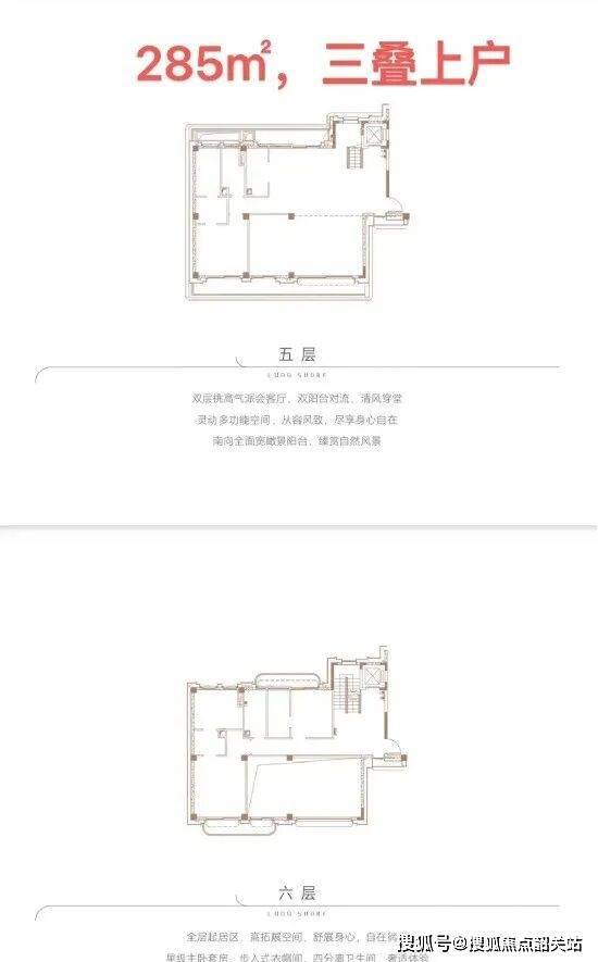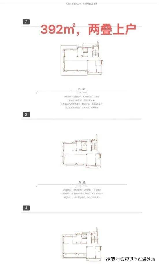 珑岸叠墅产品分为两叠与三叠两种形态,涵盖多种户型,满足不同家族的居住需求。其中,两叠产品包括上叠392㎡与下叠437㎡,三叠产品包括上叠285㎡、中叠279㎡与下叠305㎡,每一款户型都拥有超高的实用率,最高可达345%,让业主花更少的钱,享受更大的居住空间。