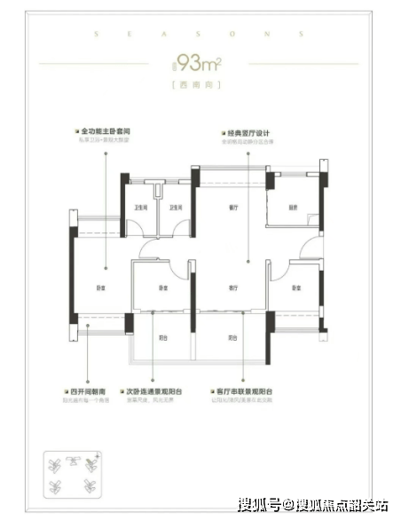 产品力是新世界·四季山水最核心的竞争力,其户型设计堪称黄埔新规下的“教科书级”范本。项目主推建面约92至141平方米的全南向三至五房户型,通过创新的空间布局,实现了最高约118%的超高使用率。建面约92平方米的三房户型,紧凑而功能完备,全南向设计确保了充足的采光与通风,非常适合年轻刚需家庭;建面约110平方米左右的四房户型,空间尺度阔绰,动静分区合理,满足了多代同堂家庭的居住需求;而建面约141平方米的五房户型,更是终极改善之选,宽敞的客厅与多个卧室均能享受南向阳光,为三胎家庭或需要独立书房的精英人士提供了极致的居住体验。项目采用2梯3户(大户型)与2梯5户(小户型)的科学配置,既保证了居住的私密性,又缩短了候梯时间。每一平米都被极致利用,真正做到了“小面积、大功能、高舒适”,让每一位业主都能享受到越级的居住体验。