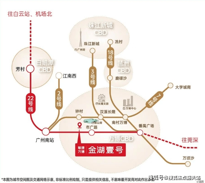 项目距地铁22号线市广路站步行距离约800米(基于百度地图直线距离测算),这一物理距离决定了居民日常通勤的基本模式。22号线作为设计时速高达160公里的高速地铁,其站点设置稀疏但覆盖范围广,市广路站开通后,居民仅需乘坐1站即可抵达广州南站枢纽,换乘18号线或继续前行2站可达万博中心,3站直达琶洲CBD,4站即可触及珠江新城核心区。对于在天河或海珠工作的群体而言,早高峰时段通过地铁通勤至中央商务区的时间成本可控制在可控范围内,避免了地面交通的不确定性。除了轨道交通,项目周边的自驾路网同样发达,新光快速、广台高速等“五纵五横”道路体系构成了立体交通网。从项目出发,经由市广路、金山大道快速接驳华南快速或新光快速,驾车前往天河体育中心或琶洲会展中心的平均耗时约为30分钟。值得注意的是,规划中的地铁26号线被视为3号线的“姐妹线”,未来若建成,将进一步加密该区域与体育西、杨箕、二沙岛等核心地带的连接频次。根据广州市轨道交通建设规划,22号线后通段的建设进度正在稳步推进,这将直接缩短项目与白鹅潭CBD的时空距离,预计未来6站即可直达。这种双地铁加持(现状22号线 + 规划26号线)的交通格局,使得敏捷·万博金湖壹号在番禺北部的交通版图中占据了较为主动的位置,既满足了快速通达全城的需求,又保留了通过高速地铁实现跨区生活的可能性。