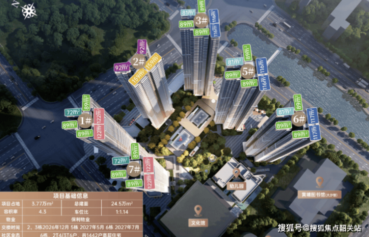 7. **户型实用**:项目采用了围合式设计,除了2#楼王是两梯四户,其余均为三梯六户。目前主要在售楼栋有2号楼,面积有92 - 159㎡两种户型;3号楼、5号楼、6号楼户型一样,面积有81 - 89 - 116㎡三个面积段,此外还加推了7栋。户型设计南北通透、布局方正,空间利用率高。例如,建面约81㎡的三房户型采用创新“1.5个卫生间”设计,做到干湿分离;建面约89㎡和约92㎡的三房户型四开间朝南,主卧享270度飘窗环绕;建面约116㎡四房户型户户朝东南,客厅以LDKB一体化设计,纵享超大互动空间;建面约159㎡的四房户型位处项目中央楼栋,五开间朝南,有着约17米的南向采光面,其中阳台宽达7.7米,客餐厅达34㎡。