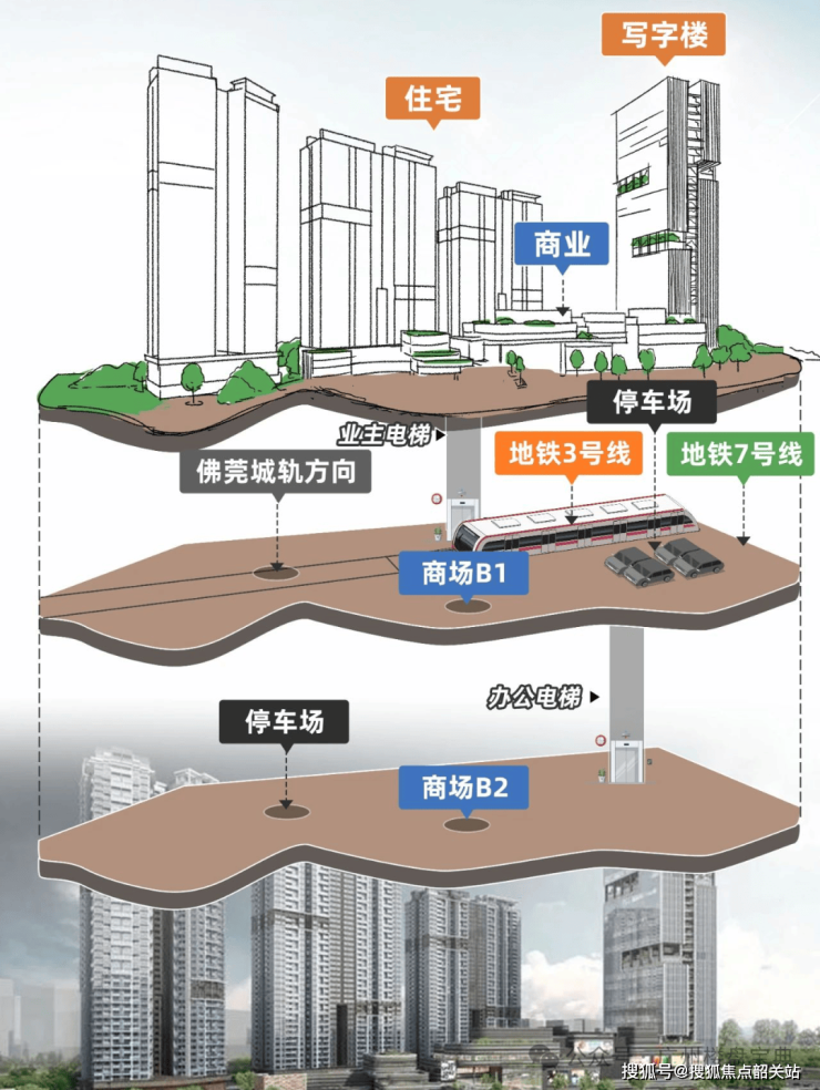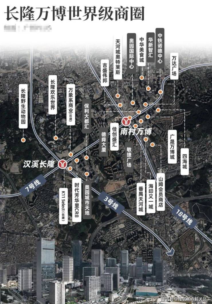 耀胜新世界广场·耀胜尊府虽非直接位于区府,但通过“万博CBD+TOD枢纽”形成了类似双核心的联动发展优势。万博CBD作为番禺经济核心,集聚了大量企业与商业资源,相当于“产业区府”;项目自身为3号线、7号线与佛莞城际交汇的TOD综合体,构成交通核心。