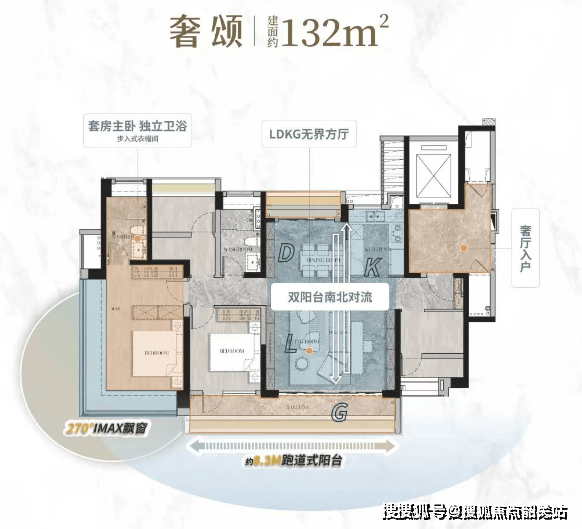 保利琅誉推出的户型面积在92至132平方米之间,所有户型均为全南向设计,南北通透,实现了超高的使用率(接近100%)。具体户型亮点如下:
