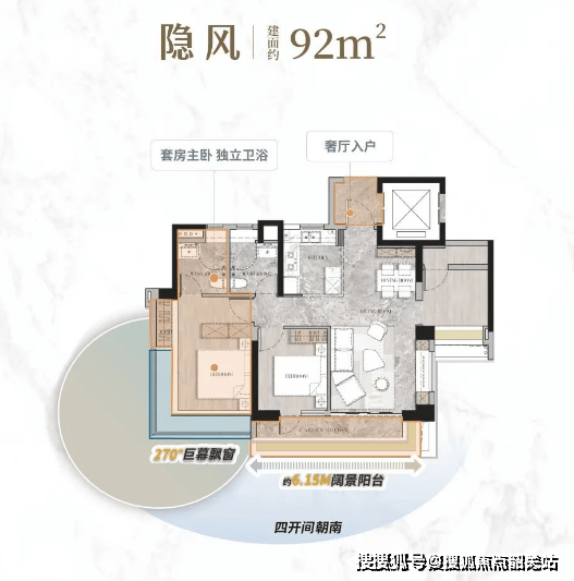 奢享主卧:270°巨幕飘窗,无垠景观环绕。