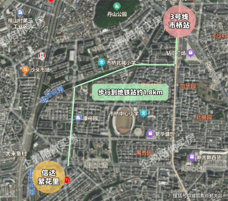 离3号线市桥站约1.8km,需要小电驴or公交车接驳,好在小区出来就有公交车,班次还挺多的。如果是小电驴接驳,日常是可以的,就是下雨天这边容易被水淹,就不太方便了。
