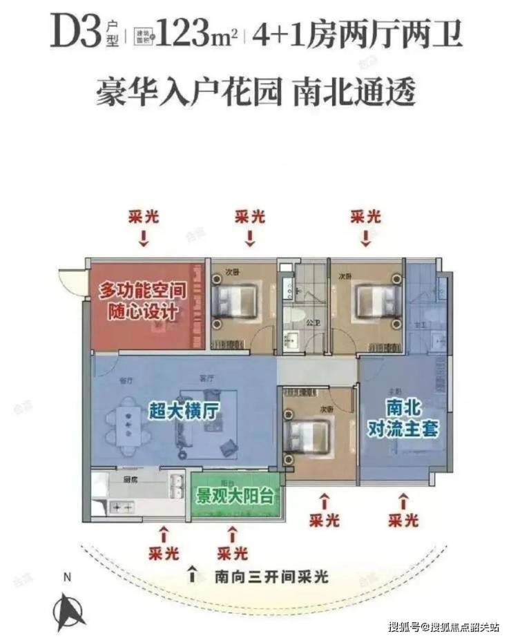 特点:南北通透 全明亮阔绰大厅,约8.5米大客厅,南向四开间,园景双阳台。