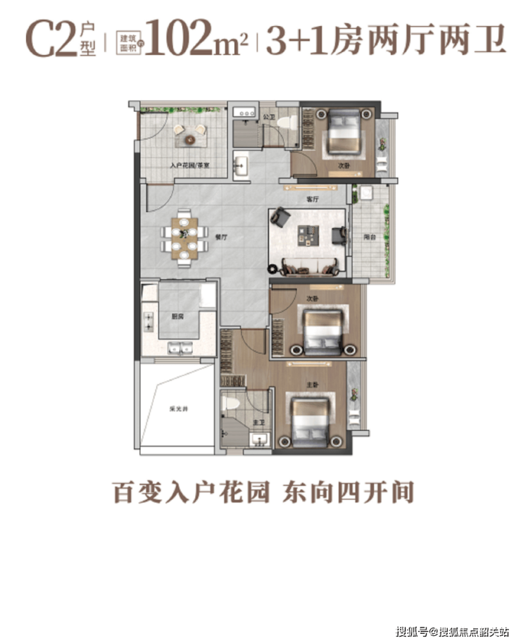 特点:百变入户花园 东向四开间,全明空间,方正实用。