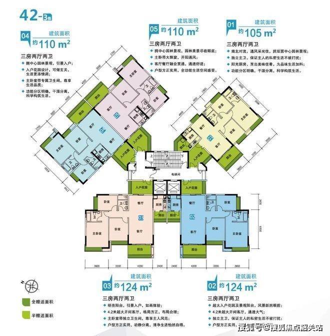 主力户型:建面约106/110/124㎡三至四房