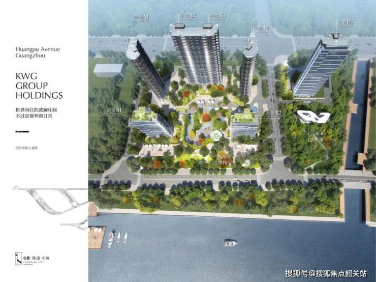 以水流为灵感,雕塑立面丰溋飘逸,采用法拉利游艇弧形线条设计,玻璃幕墙配上流线型铝扣板及造型结构装饰,营造出100%多面朝南的一线临江体验。