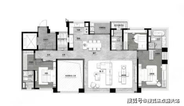 改善主力户型涵盖建面约192㎡、210㎡四房两厅三卫,专为终极改善家庭打造,满足高净值人群对高品质生活的追求。两款户型均采用9.7米IMAX横厅设计,空间开阔大气,采光通风俱佳,无论是家庭聚会还是商务会客,都能彰显主人的品味与身份。6.3米挑空客厅设计,进一步提升了空间的层次感与立体感,搭配270°全景飘窗,让室内空间与室外景观完美融合,坐在家中,就能欣赏到社区园林的美景,享受沉浸式的居住体验。全南向双主卧套房设计,配备独立卫浴与衣帽间,兼顾私密性与舒适性,让家人都能拥有专属的私密空间,享受尊贵的居住体验。此外,户型布局合理,动静分区明确,休息区与活动区互不干扰,既能满足家人的日常休闲需求,又能保障休息的静谧性,完美契合终极改善家庭的居住需求。