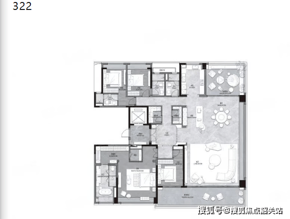 顶豪主力户型为建面约243㎡、292㎡、322㎡四房两厅四卫,专为追求极致顶豪生活的高净值人群打造,顶豪配置拉满。该系列户型采用独梯入户设计,业主可私享独立电梯厅,不仅提升了居住的私密性与尊贵感,更打造了专属的入户礼仪空间,让每一次归家都充满仪式感。LDKB一体化超大方厅设计,将客厅、餐厅、厨房、阳台无缝衔接,形成开阔的公共活动空间,无论是家庭聚会还是商务宴请,都能从容应对。中西厨分离设计,兼顾实用性与美观性,中厨满足日常烹饪需求,西厨则适合制作西餐、甜点,彰显主人的生活品味与国际化视野。主卧配备景观衣帽间与独立卫浴,空间开阔,采光充足,搭配全景飘窗,让主人在享受私密空间的同时,也能欣赏到窗外的美景,极致彰显顶豪生活的品质与格调。
