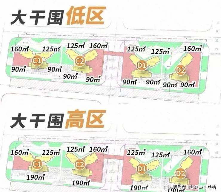 低区(3-24层):2梯4户,主打90-160㎡刚改户型;