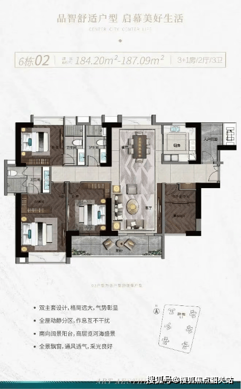 海语熙岸提供多种户型选择,包括90-118平方米的三四房舒享户型、103-118平方米的三四房舒享户型,以及184-187平方米的臻品四房三卫户型。每个户型都经过精心设计,力求最大化户户景观视野,确保每一位住户都能享受到最佳的居住体验。