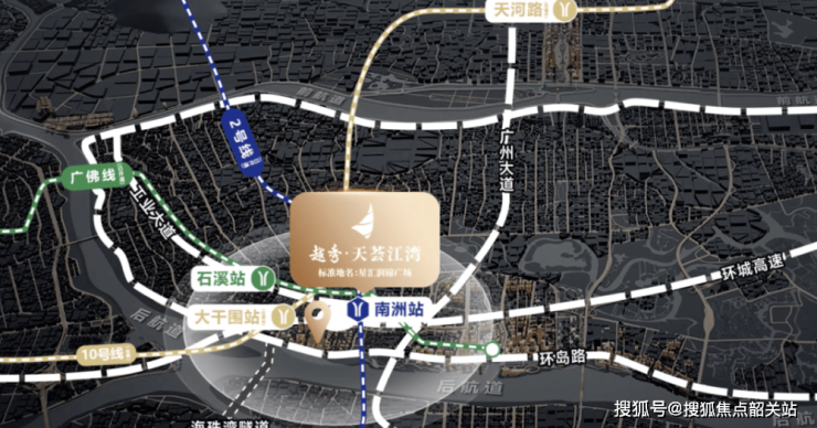 项目所处的南洲板块位于海珠区西南部,一线临珠江后航道,拥有优质滨水景观资源。交通条件十分优越,三条地铁线环绕:广州地铁2号线与广佛线在南洲站交汇,距离项目约850米;广佛线石溪站约1100米可达;在建的广州地铁10号线大干围站更是仅约500米。自驾出行方面,项目距广州内环路入口约1.3公里,直通珠江新城等核心商圈,3个红绿灯即可抵达城市CBD。公交系统也较为完善,临江区域设有公交始发站,多条线路覆盖全市主要板块。这种多维立体交通格局,不仅方便日常通勤,还为未来租赁市场带来更多潜在客户流量。
