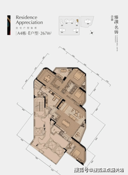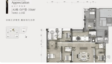 合景·臻溋名铸提供的户型选择多样,涵盖了从约267㎡至约520㎡的一线江景大平层。每一种户型都经过精心设计,旨在最大化利用空间的同时,保证居住的舒适性和私密性。例如: