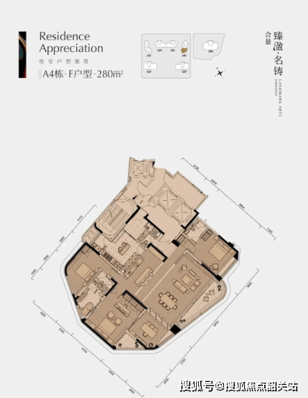 267㎡-280㎡南向大平层:四房两厅三卫/四卫设计,拥有270°环幕飘窗,尽享超广角江景。