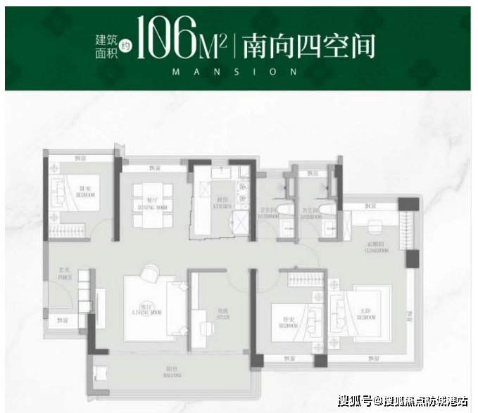 建面约106㎡舒适改善四空间: