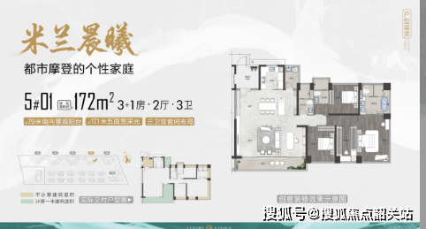 建面约172㎡进阶奢阔户型,打造约43㎡超大一体式客餐双厅,开放格局大气恢弘,适配家庭聚会、私人宴请、日常休闲多元场景。约7.9米超宽南向观景阳台,直面社区园林景致,视野无遮挡,四季风光尽收眼底。创新三卫双主套设计,次卧配备独立卫浴,兼顾三代同堂的居住需求与个人隐私,功能布局合理,空间尺度奢适,细节设计贴合高阶居住习惯,自住体面感十足。