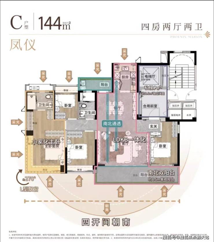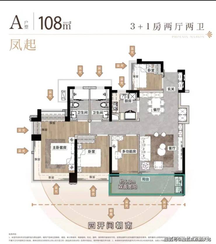 项目推出的建面约108-144㎡的户型,充分考虑到了不同家庭结构的需求。例如,凤起户型建面约108㎡,采用3+1房两厅两卫设计,南向四开间,配备约6.3m双面宽阳台,实现了LDKB一体化设计,并且主卧拥有约270°飘窗,使用率接近100%。凤鸣户型建面约128㎡,同样采用了四房两厅两卫的设计,但增加了约7.5m双面宽阳台和800库玄关收纳空间。凤仪户型则是建面约144㎡的四房两厅两卫,板楼设计使其南北通透,私密性更佳,特别之处在于私梯入户,享有约8.5㎡独立门庭,主卧同样配备了约270°飘窗,使用率达到100%。