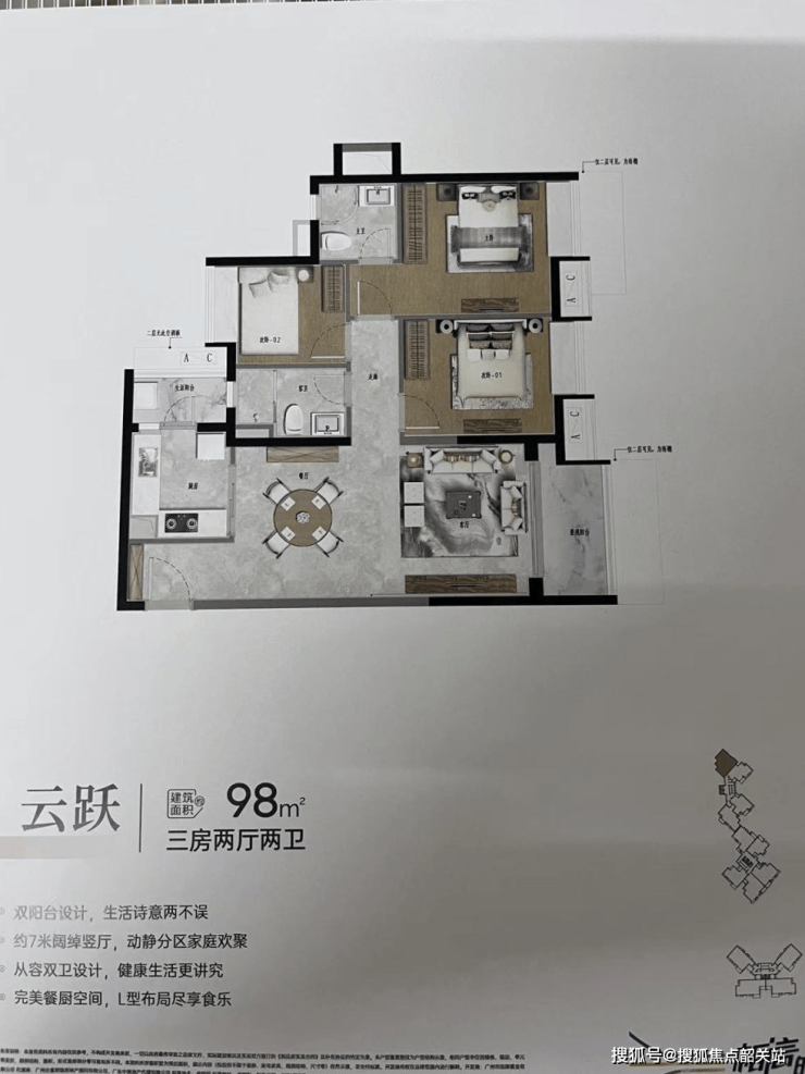 凯德双桥新作项目占地面积不大,仅有3栋33层高层住宅,总户数411户,分别是两梯四户的北塔、南塔以及两梯五户的中塔。