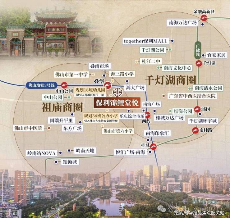 保利锦鲤堂悦作为祖庙街道首个新规小区,占据禅桂芯双区交汇的黄金区位,堪称“占尽天时地利人和”,是保利打造的中式府邸标杆项目,以“一府跃龙门”为设计理念,成为祖庙街道楼盘的流量密码,首开第一个月网签便超200套,持续热销领跑区域市场。项目坐落于禅城区祖庙街道文华北片区,地处祖庙与千灯湖双CBD辐射圈,3个灯位即可直达千灯湖CBD,直线3公里可达祖庙商圈,既能坐拥祖庙的人文底蕴与成熟配套,又能共享千灯湖的高端资源与发展红利,占位主城发展风口。交通路网四通八达,依托5横5纵轨道交通格局,横向贯通海八路、海五路等核心道路,纵向衔接桂澜路、岭南大道等交通主动脉,海三路3公里3个灯位直达千灯湖,海八路直通广州,岭南大道直线可达祖庙与文华公园电视塔。距离地铁3号线叠滘站仅600米,3站可换乘广佛线桂城站,规划中的佛穗莞28号线建成后,5站可直达广州、东莞城心,立体交通网络让广佛同城生活无缝衔接。项目周边打造“零工业干扰”的纯粹居住区,闹中取静,兼顾繁华与静谧,适配刚需、改善等多类人群,是城央置业的优选之作。