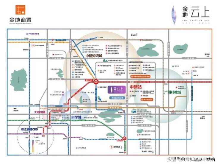 金地云上位于增城中新板块,离项目最近的地铁站是21号线中新站,从中新地铁站出发,中新-镇龙(换乘快线)-苏元-大观南路,3个站可到达天河。