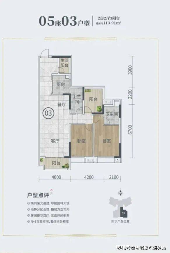 特色全龄配套,一期有游泳池、花园等,二期有生鲜超市、卫生服务站、文化活动室和中央花园。围合院落式布局,楼距超宽,是低密度社区。营造约 8000㎡岭南禅意园境,有花曼公园、休闲运动场地、中式回廊、儿童天地等主题休闲场地。