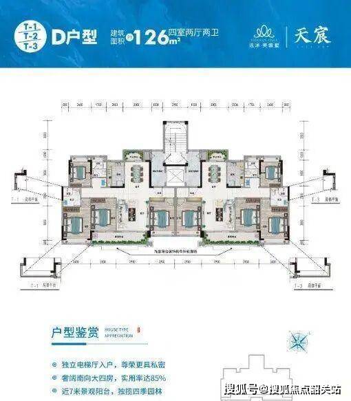 户型设计独具匠心。以天著 Ⅱ 四层全套房院墅为例,四层全套房设计实现动静分区,三代同堂生活互不干扰。独立归家走道彰显业主尊贵地位。7 米超高临湖客厅保证充足采光,270° 全景露台可欣赏壮丽景观。拓展空间超 100%,享整层地下阳光庭院,增加了居住空间实用性与趣味性,可打造多种功能空间。虽未明确提及得房率,但从空间拓展和布局来看,居住体验和实际使用面积都很可观。