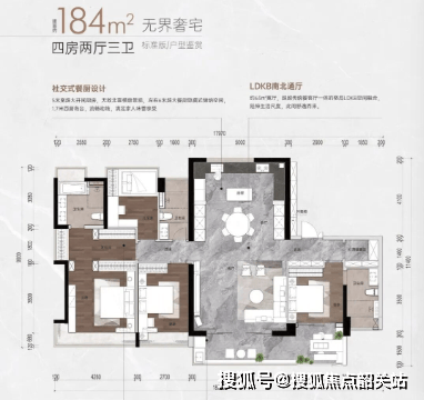 户型空间设计采用 LDKB 一体化功能规划思路,将客厅、餐厅、厨房及阳台区域进行开放式连接,形成整体尺度延展视觉体验。同时,结合多功能空间设计,使家庭使用场景具备灵活延展性,可适配办公、阅读、亲子陪伴、会客及私密休闲等需求。