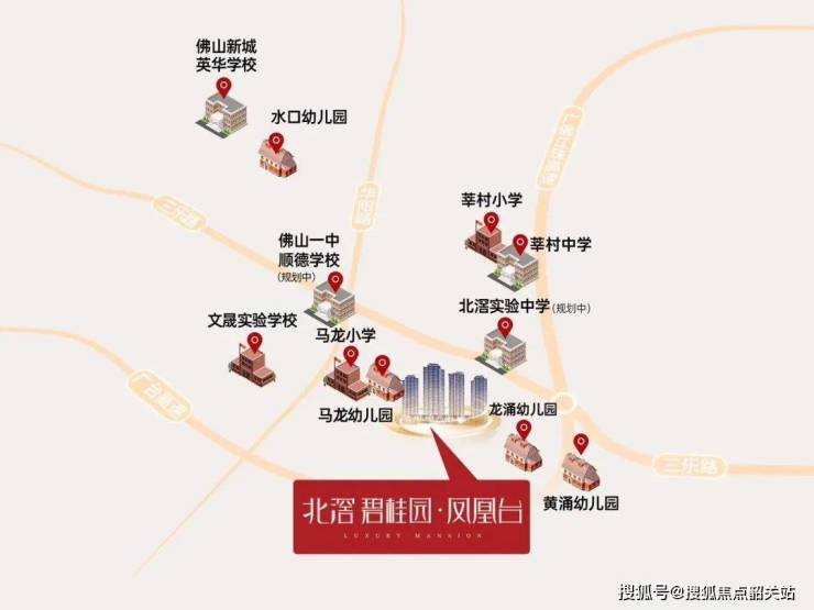 该项目依托三大核心干道(乐一路、三乐路、广台高速)形成畅通无阻的交通网络,实现了与佛山新城、北滘及广州核心区的无缝连接。同时,规划中的佛山14号线骏悦路站距离项目仅约0.5公里,步行约3分钟即可到达;已开通的佛山3号线潭洲会展站距离项目直线距离约4公里,车程约8分钟;在建中的广佛环线北滘西站则让居民能够快速抵达广州南站乃至琶洲,享受1小时粤港澳大湾区生活圈的便利。