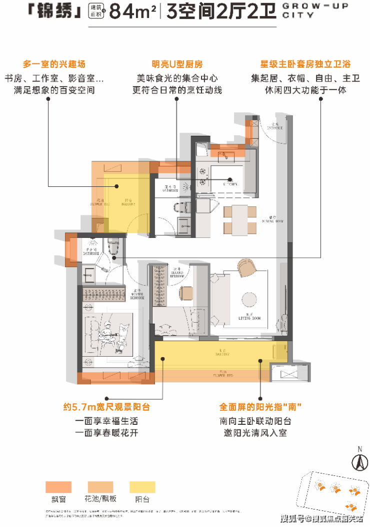 7、【越秀·大学城·星汇锦城】:84㎡户型,改善置业优选