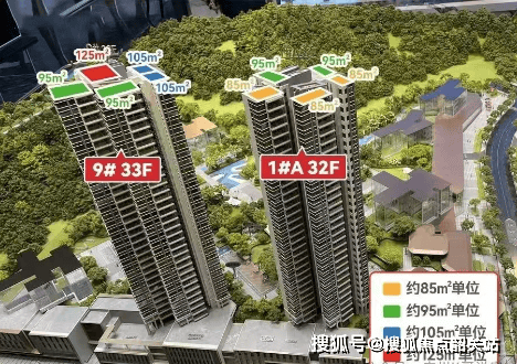 95㎡3+1房:分布在1号楼和9号楼,入户飘窗玄关设计,主卧配备270°全景飘窗,增加了空间的层次感和观景体验。