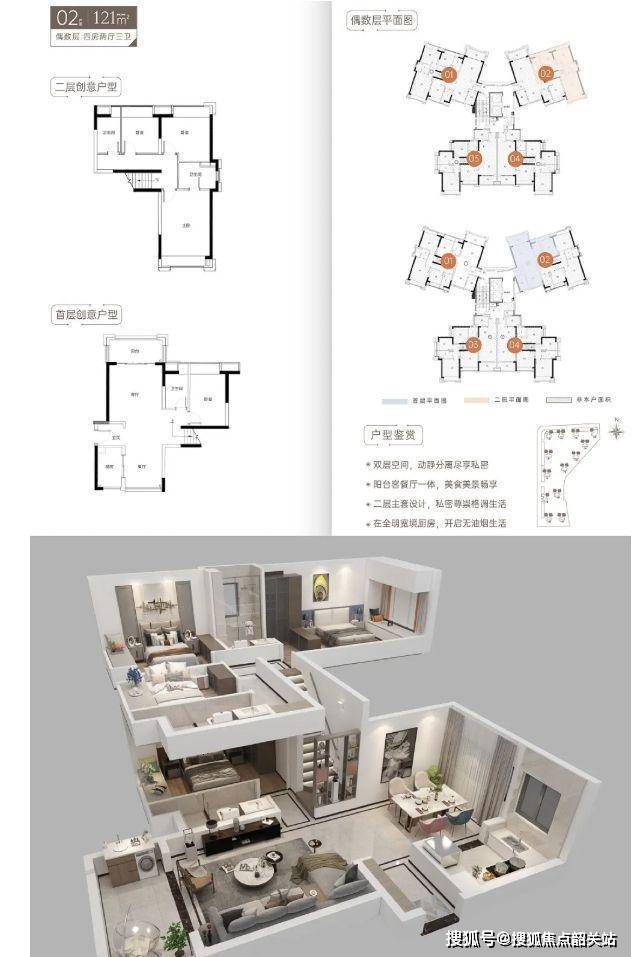 与奇数层的 121㎡户型在整体布局和优势上相似,同样拥有宽敞的空间、合理的动静分区以及南北通透全明户型。凭借其复式结构,上下两层的空间可灵活打造,满足不同家庭结构和生活习惯的需求。无论是打造温馨的家庭影院,还是静谧的书房,都能轻松实现。全屋高标准精装,国际一线品牌保证品质,各种贴心功能设施为生活增添便利与舒适。