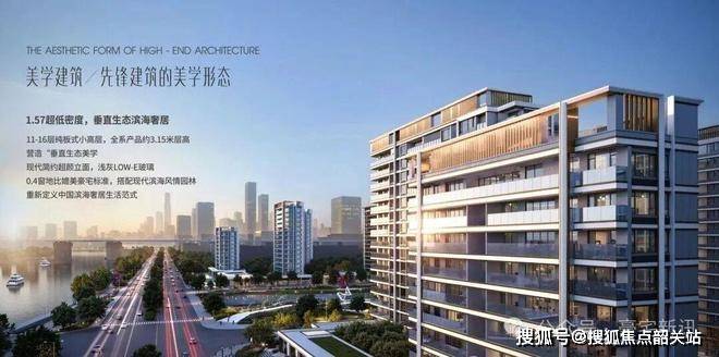 与城市高密度塔楼不同,项目采用纯板式结构设计,强调南北通透与均好采光。整体容积率低至约1.57,在当前主流住宅产品中属于较为稀缺的低密范畴。建筑层高约3.15米,高于常规住宅标准,空间纵向尺度更为舒展,从视觉到体感都更显开阔。窗地比达到约0.4,大面积开窗让自然光线充分进入室内,日照时间更长,室内外视野自然衔接。外立面采用现代简约风格,线条干净利落,搭配质感玻璃材质,整体呈现稳重而富有品质感的城市形象。