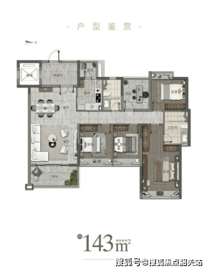 第五期推出的 9 层稀缺小高层产品中,143㎡的五房户型备受瞩目。采用 1 梯 2 户的尊崇配置,尽显私密与尊贵。户型东南向设计,可俯瞰中心园林与山湖盛景,将自然的美妙意境融入到日常生活的每一个瞬间。无论是晨起时阳光洒在脸上,还是傍晚与家人在窗前共赏夕阳,都能感受到生活与自然的和谐共生。