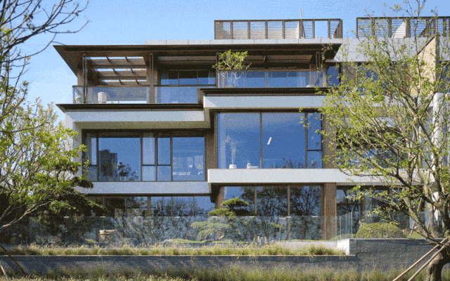 澐璟的产品力,堪称教科书级示范。首推别墅产品面积涵盖约290㎡至700㎡,采用“地面三层半+地下两层”结构,毛坯交付赋予业主极致改造自由。尤为亮眼的是其“类独栋”错位拼合设计——每户均享独立南向花园,私密性媲美独栋,却无需承担高昂总价。地下室层高达约6.6米,配合超大采光井,彻底打破传统地下空间的压抑感,可轻松打造家庭影院、酒窖、艺术收藏室等个性化功能区。建筑立面采用BOX全景舱设计,大面积Low-E超白玻搭配天然石材与铝合金线条,既现代又历久弥新。而即将推出的第四代大平层,则将“空中庭院”理念融入高层住宅,每户拥有专属花园甚至空中停车位,真正实现“住在森林里”的垂直生态生活。