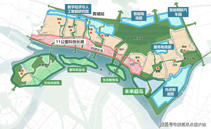 9个特色主题公园:海丝科技公园、都市农田公园、岭南艺境公园、沙浦国学公园、城市塑影公园、缤纷童趣公园、龙舟生态公园、远洋文化公园、桥畔运动公园,每个公园各具特色,涵盖科普、休闲、运动、文化等多元功能。