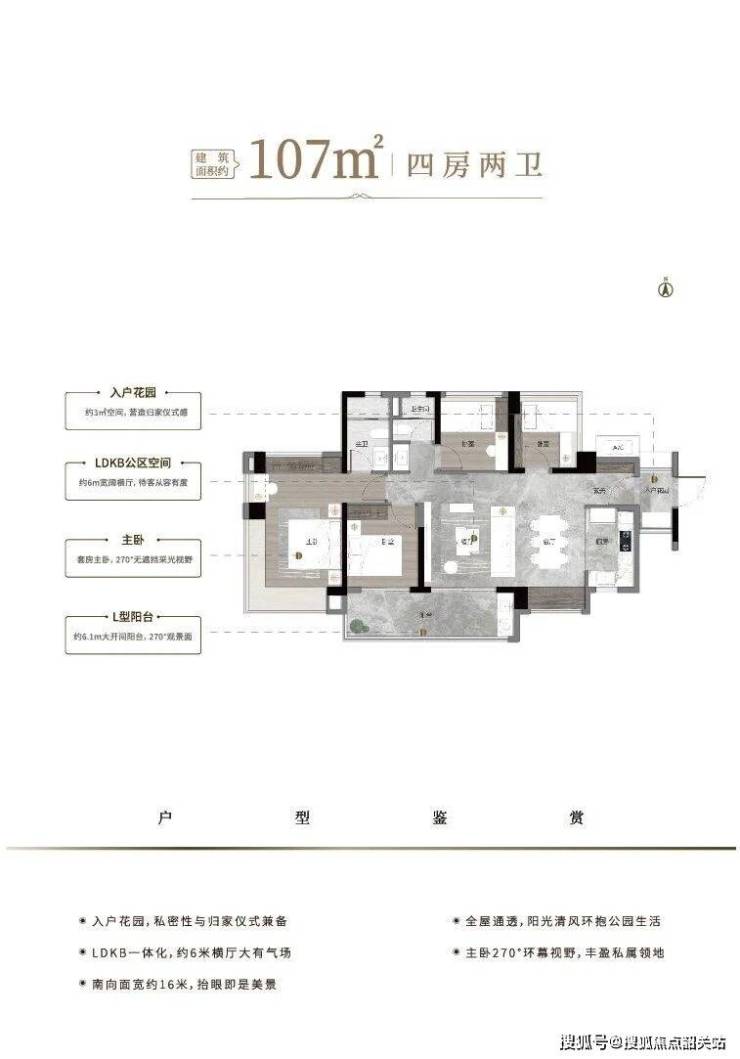 3. 建面约107㎡四房两厅(全南向)