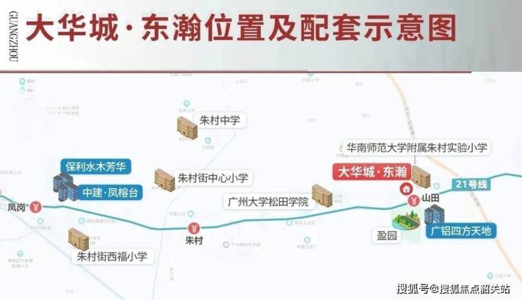 项目距离地铁21号线山田站D出口仅约50米,实测步行不到2分钟。这条线是快慢车混跑线路,快车6站直达天河智慧城,3站到黄埔科学城核心区。早高峰打车经广汕公路往天河方向,平均耗时约25分钟;若走北三环高速朱村出口(直线约1.3公里),未来增天高速通车后,往增城北部或天河东部的通行效率还会进一步提升。