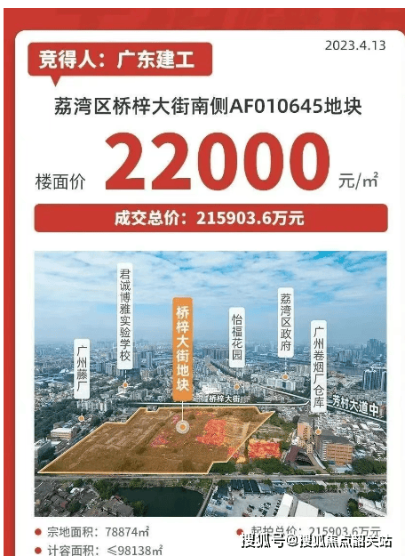 建鑫如意芳华的前身为 2023 年 4 月广东建工联合体以 21.6 亿底价竞得的桥梓大街南侧地块。该地块楼面价 2.2 万 / 平,虽看似不高,但因需配建大量安置房、幼儿园等设施,成本大增,导致开发进程缓慢,历经近两年半才即将面市。作为广东建鑫在广州主城区的首个住宅项目,它承载着诸多期待与挑战。