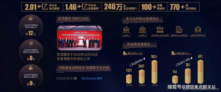 在物业管理方面,我们一贯沿用的是自身品牌——世茂服务,是中国领先的综合物业管理及社区生活服务提供商,服务覆盖100+座城市,近240万用户。