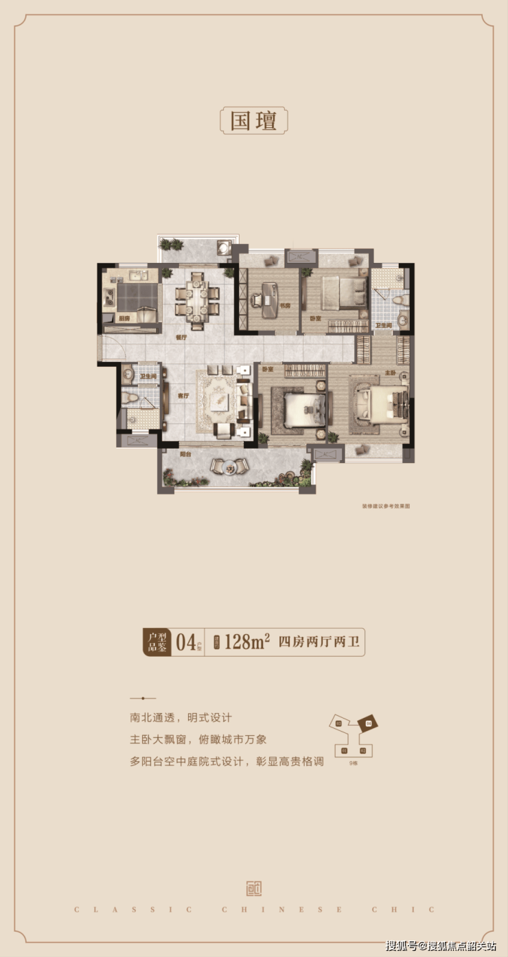 · 大面宽阳光客厅,格局方正严谨,彰显大家风范。