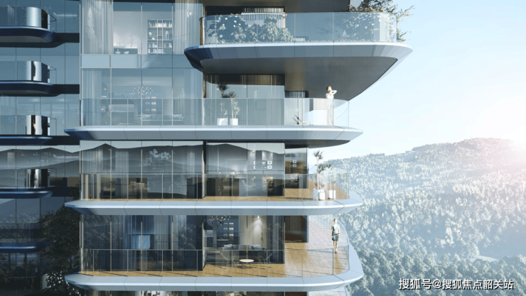 首创广州东空中院子,阳台层高达6.5米,实现建筑与景观无界融合。