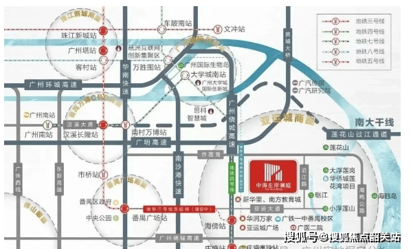 项目地处广州市番禺区核心发展带——亚运大道北侧,西邻海鸥岛,南望莲花山,东靠砺江水系,地理格局兼具城市便利与自然静谧。这一区域是番禺东部重点发展的居住板块,依托亚运城十年成熟积淀,已形成完善的城市功能体系。左岸澜庭紧邻全国销量领先的亚运城大盘,共享其庞大的人口基础与生活氛围,同时又因独立开发而保持相对私密与宁静。项目所在位置处于番禺连接广州主城区与南沙新区的重要节点,未来随着区域路网持续优化,其战略价值将进一步凸显。