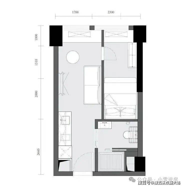 户型格局:独立厨卫,单室套设计,空间紧凑不拥挤,动线清晰合理